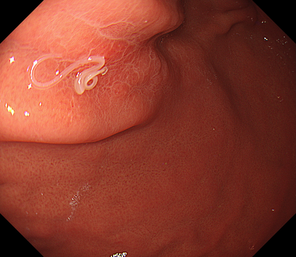 このうち、約98%が胃アニサキス症といわれています。胃にいる場合は、胃カメラで虫体を確認し、その場で鉗子を使って摘出することで治療が完了します。